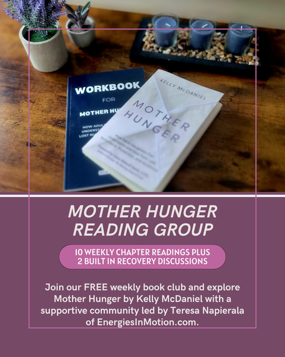 Join us for a compassionate, trauma-informed reading group exploring Mother Hunger by Kelly McDaniel. This book club is free for all to join, offering a safe space to read one chapter a week, reflect, and connect with others who understand the journey of healing from unmet maternal needs.